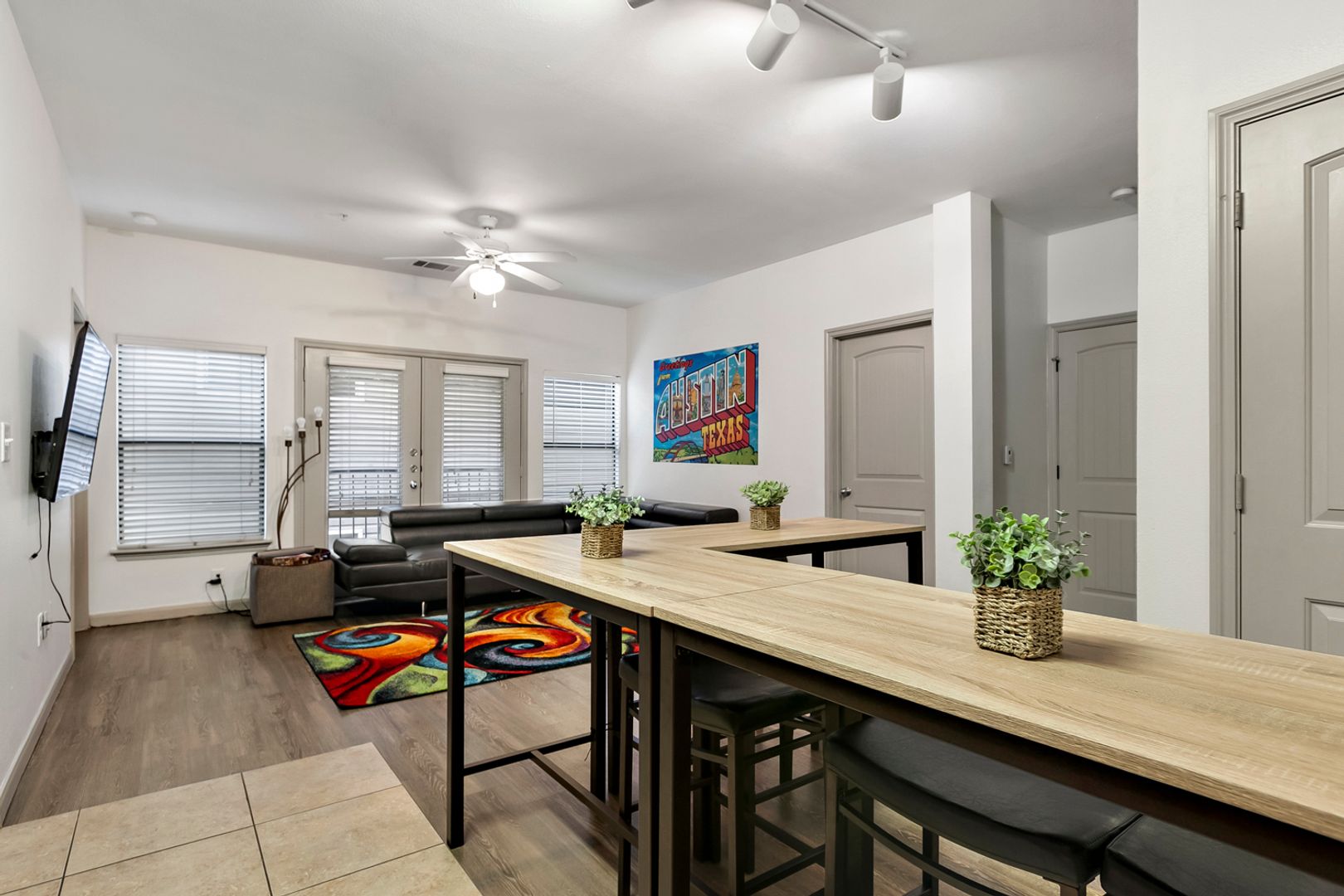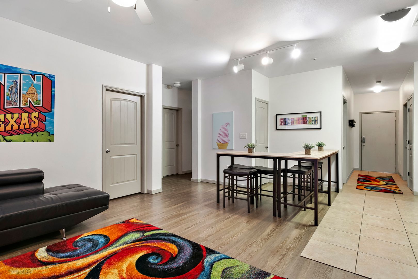 Welcome to Texan 304 #3, a modern and vibrant apartment located in the heart of Austin, TX. With its prime location in North Campus, this spacious 5-bedroom, 2-bathroom apartment offers the perfect blend of convenience and style. Ideal for students and professionals alike, this apartment is within walking distance to the University of Texas, making it a breeze to get to classes or work. One of the standout features of Texan 304 is the included onsite parking, ensuring that you always have a secure spot for your vehicle. No need to worry about finding street parking or paying extra fees. Additionally, this apartment comes with a washer and dryer, saving you time and money on trips to the laundromat. We understand that pets are part of the family, which is why Texan 304 is pet-friendly. Bring your furry friends along to enjoy this comfortable and spacious living space. The modern design and layout of this apartment create a welcoming and stylish atmosphere. The open floor plan allows for easy flow between the living, dining, and kitchen areas, perfect for entertaining guests or simply relaxing after a long day. Texan 304 is located in a vibrant neighborhood, surrounded by a variety of dining, shopping, and entertainment options. Whether you're looking for a cozy café to study in or a trendy restaurant to enjoy a meal with friends, you'll find it all just steps away from your front door. Don't miss out on the opportunity to make Texan 304 your new home. Contact us today to schedule a tour and experience the convenience and modern living this apartment has to offer.